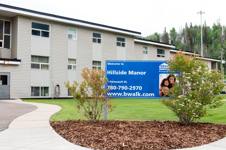-------------AboutIncentives Available on Select Suites!Hillside Manor is a beautiful rental property located at the edge of downtown Fort McMurray, just minutes from the best shops and restaurants and Tamarack Village. The thoughtfully designed 1-, 2-, and 3-bedroom suites are pet-friendly and feature upgraded kitchens and laminate flooring.WORRY-FREE LIVING -24-hour customer service team -On-site cleaning staff-On-site landscaping and snow removal-On-call emergency maintenance-On-site security and video surveillance in all buildings and parking areasWHAT SETS US APART-Community involvement opportunities-Exclusive discounts with local businesses-Free resident eventsLIVE HERE-Functional 1, 2 and 3-bedroom suites-Standard and upgraded suites -6 and 12-month lease terms-Outdoor parking -Smart Card System in laundry facilitiesStart getting to know the Boardwalk community by following @bwalkcommunity on Facebook and Instagram!**Virtual Showings Available!**Receive the most exclusive rates on TELUS Optik TV and High-Speed Internet. Rent with confidence at Hillside Manor where safety and security are a top priority!Note: Information posted, including suite availability, security deposits, rental rates and incentives are subject to change without notice or may vary by suite type. Current residents can contact the Customer Service Representative to discuss lease renewal options. Suites and floor plans may not be as shown. Some conditions apply. Rental rates listed are net and include current incentives when applicable. Incentives advertised are for new applicants. Internal transfers are subject to conditions found within the Transfer Agreement.Community AmenitiesStorage roomSuite AmenitiesCable readyInternet readyUtilities IncludedHeatWater