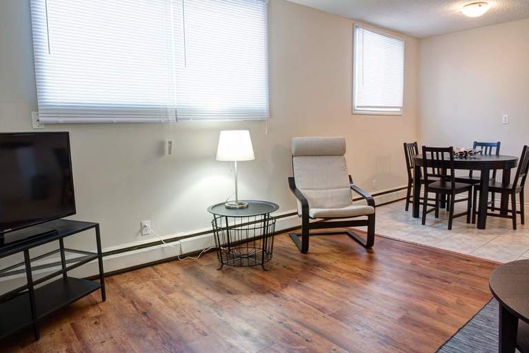 Affordable furnished and unfurnished two bedroom suites featuring vinyl plank flooring. Includes microwave, on-site laundry and energized surface parking. Furnished units include linens and fully equipped kitchens and are available for an additional $100 per month. One and three bedroom suites are also available.Heat, water and electricity are included in the rent. For a limited time, when you sign a one year lease you will receive:For a limited time, when you sign a one year lease you will receive one free parking stall and pay a reduced security deposit!Small pets allowed for a non-refundable pet fee.After hours appointments readily accommodated.